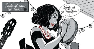 Τα αγαπημένα τραγούδια ξεχειλίζουν από εικόνες. Διαφορετικές για κάθε ακροατή. Εννιά δημιουργοί κόμικς περνούν από τη θέση του ακροατή στη θέση του σχεδιαστή τέτοιων εικόνων προσθέτοντας τη δική τους ενδιαφέρουσα καλλιτεχνική οπτική. «Δεν είναι λίγες οι φορές που ακούγοντας ένα αγαπημένο τραγούδι σκαρφιζόμαστε τη δική μας ιστορία που θα μπορούσε να το συνοδεύει. Ιστορίες που δεν είναι ποτέ ίδιες μεταξύ τους. Οι πολλαπλές ερμηνείες που δίνουμε σε ένα τραγούδι σε συνδυασμό με το μίνιμαλ στοιχείο του είναι και το γοητευτικό. Κάτι όμως ακόμα πιο γοητευτικό είναι η εικονοποίησή τους!», γράφει ο Λεωκράτης Ανεμοδουράς στο εντιτόριαλ του νέου περιοδικού «Μουσικά Καρέ» (εκδόσεις Μικρός Ήρως). Και κρίνοντας από το περιεχόμενο του περιοδικού, η εικονοποίηση δεν είναι μόνο γοητευτική αλλά και πανέμορφη και πανέξυπνη. «Τράβα βρε μάγκα» από την Αγγελική Σαλαμαλίκη Η ιστορία της σχέσης των κόμικς με τη μουσική βέβαια δεν είναι σημερινή αλλά κρατάει χρόνια. Την περιδιαβαίνει ο Θοδωρής Μανίκας στον πρόλογό του επισημαίνοντας τις πολλαπλές μορφές και εκφάνσεις αυτής της σχέσης: «Κόμικς ως artwork εξωφύλλων δίσκων αλλά και πολυσέλιδα κόμικς ως ένθετα σε δίσκους βινυλίου (από το θρυλικό εξώφυλλο του μέγιστου Crumb για το Cheap Thrills της Janis Joplin ώς το πόνημα του designer Στέργιου Δελιαλή για το δεύτερο και τελευταίο άλμπουμ των Poll). Κόμικς με βιογραφίες μουσικών και φανταστικές περιπέτειες που έχουν ως ήρωες σταρ της μουσικής (από τον Bob Dylan και τους Kiss ως τον Elvis και τον Αργεντινό σαξοφωνίστα Gato Barbieri). Ουκ ολίγα κόμικς και graphic novels, σχεδιασμένα ή/και σεναριογραφημένα από μουσικούς (από τον Charlie Watts ως τον Glenn Danzig και από όλους σχεδόν τους Grateful Dead ώς τον Nick Cave). Καλλιτέχνες που επιλέγουν ως εικόνα τους μια κομικσοειδή καρικατούρα […] Αφίσες, flyers συναυλιών και φεστιβάλ, προωθητικά διαφημιστικά υλικά κ.λ.π. Περιοδικά κόμικς και φανζίν, με μουσικές (συνήθως ροκ) θεματικές. Σειρές κινουμένων σχεδίων με πλείστες μουσικές αναφορές αλλά με συχνές “παρουσίες” διάσημων μουσικών στα καρέ των επεισοδίων τους (κορυφαίες, οι αμερικανικές σειρές The Simpsons και Beavis and Butt-Head)». «Don’t stop me now» των Queen από την Αρινέλλα Κοτσίκο Από όσα γράφει ο Θοδωρής Μανίκας, εξάγεται το συμπέρασμα ότι το επόμενο και πολύ αποφασιστικό βήμα προς την ολοκλήρωση αυτής της σχέσης δεν μπορεί να είναι άλλο από τη μεταφορά/προσαρμογή των κόμικς σε τραγούδια και το αντίθετο. Αυτό το δεύτερο υλοποιούν με μεγάλη επιτυχία οι εννιά δημιουργοί κόμικς που συμμετέχουν στα «Μουσικά Καρέ». Τον Μαύρο Γάτο του Βασίλη Παπακωνσταντίνου, ένα τραγούδι «ανυπακοής» που σιγοψιθύρισαν ή βροντοφώναξαν πολλές γενιές νέων σε συναυλίες, πάρτι, πλατείες και πορείες, επιλέγει ο Θανάσης Καραμπάλιος που ακολουθεί κατά γράμμα τους στίχους του συνεπώνυμου του Βασίλη Παπακωνσταντίνου, Θανάση, με αποκορύφωμα τη σύλληψη του μποέμ Γάτου όταν «βγήκε σεργιάνι το χαφιεδοτσουρμό, αυτοί που αποτελούνε τον εθνικό κορμό». Ο «Μαύρος γάτος» του Βασίλη Παπακωνσταντίνου από τον Θανάση Καραμπάλιο Τους στίχους και τη μουσική του Freddie Mercury από το «Don’t stop me now» των Queen εικονογραφεί η Αρινέλλα Κοτσίκο επιτυγχάνοντας να αποδώσει ιδανικά τις στιγμές έκστασης και απόλαυσης μιας κοπέλας που νιώθει σαν «sex machine, ready to reload, like an atom bomb about to explode». Σε ένα από τα πιο γνωστά τραγούδια του Διονύση Σαββόπουλου, το «Δημοσθένους Λέξις», προσφέρει τις εικόνες του ο Περικλής Κ