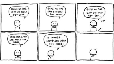 Είναι απαραίτητος ο ρεαλισμός στις αναπαραστάσεις των ανθρώπων στα κόμικς; Μήπως ένας κύκλος και λίγες γραμμές είναι ό,τι ακριβώς χρειάζεται για να δοθεί η ψευδαίσθηση της ανθρώπινης μορφής; Ορισμένα πλήρως σχηματοποιημένα stick figures αποδεικνύουν ότι η ακρίβεια και η λεπτομέρεια δεν αποτελούν προϋποθέσεις μιας επιτυχημένης αφήγησης. Πριν από λίγες εβδομάδες, σε άρθρο με τίτλο «Προσωπικές Υποθέσεις» (7/2/2026) αναφερθήκαμε στα ιδεοτυπικά σχεδιασμένα και υπεραπλοποιημένα πρόσωπα πολλών χαρακτήρων των κόμικς που μπορεί να στερούνται λεπτομέρειες, χωρίς αυτό να στερεί τίποτα από την αφηγηματικότητα και την αρμονική σχέση εικόνας και κειμένου. Σχολιάζαμε, επίσης, τον ανθρωπομορφισμό, την προσπάθεια δηλαδή πολλών καλλιτεχνών να αποδώσουν ανθρώπινες μορφές σε αντικείμενα, ζώα κ.ά., καθώς και τη διαχρονική και αυθόρμητη τάση (ή ανάγκη;) του ανθρώπου να αναγνωρίζει χαρακτηριστικά προσώπου όπως μάτια, στόμα και μύτη σε οποιοδήποτε κλειστό σχήμα που μέσα του βρίσκονται δύο τελίτσες κοντά η μία στην άλλη, μια κατακόρυφη γραμμούλα από κάτω κι άλλη μία οριζόντια ακόμα παρακάτω. Αυτή την έμφυτη συνήθεια περιγράφει ιδανικά ο Scott McCloud στο «Κατανοώντας τα Κόμικς», δεν προχωρεί όμως τον συλλογισμό του, τουλάχιστον στον ίδιο βαθμό, και στα σώματα των χαρακτήρων που σχεδιασμένα μόνο με τις απολύτως απαραίτητες λεπτομέρειες αποτελούν τις μορφές που αποκαλούνται «stick figures». Αυτές δεν χρειάζονται τίποτα περισσότερο από έναν κύκλο για κεφάλι, μια γραμμή ή, το πολύ, ένα παραλληλόγραμμο για σώμα και άλλες τέσσερις γραμμούλες για χέρια και πόδια. Κι έτσι σχηματίστηκε ένας άνθρωπος! Το αποδεικνύουν ο «Cynical Man» του Matt Feazell, οι χαρακτήρες του «XKCD» του Randall Munroe, οι «Σπιφ και Σπαφ» του Τάσου Ζαφειριάδη. Και, με λίγο περισσότερες λεπτομέρειες είναι η αλήθεια, όχι τόσες όμως που να μην επιτρέπουν την κατάταξή τους στα stick figures, η σειρά «Cyanide and Happiness» των Kris Wilson, Ron DenBleyker, Matt Melvin και Dave McElfatric καθώς και το «Phat Comicz» του Βαγγέλη Χατζηδάκη. «Σπιφ και Σπαφ» Σε μια εποχή όπου τα ψηφιακά μέσα, η τεχνητή νοημοσύνη, τα φίλτρα, τα προηγμένα προγράμματα σχεδίασης και τα τρισδιάστατα περιβάλλοντα επιτρέπουν τη μέγιστη δυνατή λεπτομέρεια και τη βελτιστοποίηση της αληθοφάνειας στην αναπαράσταση της ανθρώπινης μορφής χωρίς, πολλές φορές, ούτε καν την εμπλοκή του ανθρώπινου χεριού παρά μόνο με φωνητικές εντολές, τα stick figures ίσως είναι μια προσπάθεια διάσωσης της χειροποίητης δημιουργίας. Μια ανακουφιστική παραδοχή των ανθρώπινων ατελειών, μια συνθηκολόγηση και συμφιλίωση με το «ανθρώπινο λάθος» που πολύ σύντομα θα μας κάνει να είμαστε περήφανοι και να ξεχωρίζουμε από τις μηχανές. «XKCD» Τέτοιες εσκεμμένες ατέλειες ή, καλύτερα, απλοποιήσεις υπάρχουν πολλές στο «XKCD», μια σειρά που παρά τον σχεδιαστικό μινιμαλισμό της – δεν υπάρχουν ούτε καν χαρακτηριστικά στα πρόσωπα των ανθρώπων – καταπιάνεται με απόλυτη επιτυχία με τα μαθηματικά, τις φυσικές επιστήμες, την τεχνολογική εξέλιξη, τις μηχανές αλλά και τις κοινωνικές αμηχανίες. Το χιούμορ δεν είναι τόσο απλό όσο οι μορφές και γεννιέται από τα λογικά και μαθηματικά παράδοξα, τις επιστημονικές υπερβολές αλλά και αυταπάτες, την πνευματική απόσταση των ανθρώπων παρά την ασφυκτική εγγύτητά τους στο εργασιακό τους περιβάλλον. «Cynical Man» Στις περιπέτειες του «Cynical Man» τα σώματα είναι, ίσως, ακόμα πιο σχηματοποιημένα και απλά αλλά υπάρχουν πολύ έντ