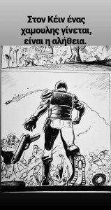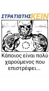 Bonadrug Posted October 8, 2008 Member ID: 1,271 Group: Veterans Topic Count: 715 Content Count: 3,481 Reputation: 20,651 Achievement Points: 3,539 Days Won: 16 With Us For: 6,857 Days Status: Offline Last Seen: October 11 Posted October 8, 2008 από το σημερινό (8/10/2008) Βήμα «Στρατιώτης Κέιν» στο χαρτί Νέα διμηνιαία έκδοση στα κεντρικά περίπτερα της πρωτεύουσας. Οι εικονογραφημένες ιστορίες του «Στρατιώτη Κέιν», τις οποίες εμπνέεται ο 24χρονος σκιτσογράφος Κ. Παντούλας, εξυφαίνουν ένα περιπετειώδες μέλλον στην Ευρωπαϊκή Ενωση όπου ένας ευρωστρατιώτης εμφανίζεται ως σωτήρας της Δημοκρατίας και της Δικαιοσύνης. Ο Κ. Παντούλας, παρ΄ ότι συνεχίζει τις σπουδές του στην ΑΣΚΤ στη γλυπτική (αποφοίτησε από τη σχολή Ορνεράκη με λίαν καλώς) και ενώ συνεργάζεται με περιοδικά και εταιρείες ως σκιτσογράφος (ήταν και καλλιτεχνικός διευθυντής στην ταινία του Κ. Κεραμπίνη «Το κουτί»), αναγνωρίζει ως κύριο στόχο του την ολοκλήρωση της σειράς των περιπετειών του αινιγματικού Στρατιώτη του. 16 Quote