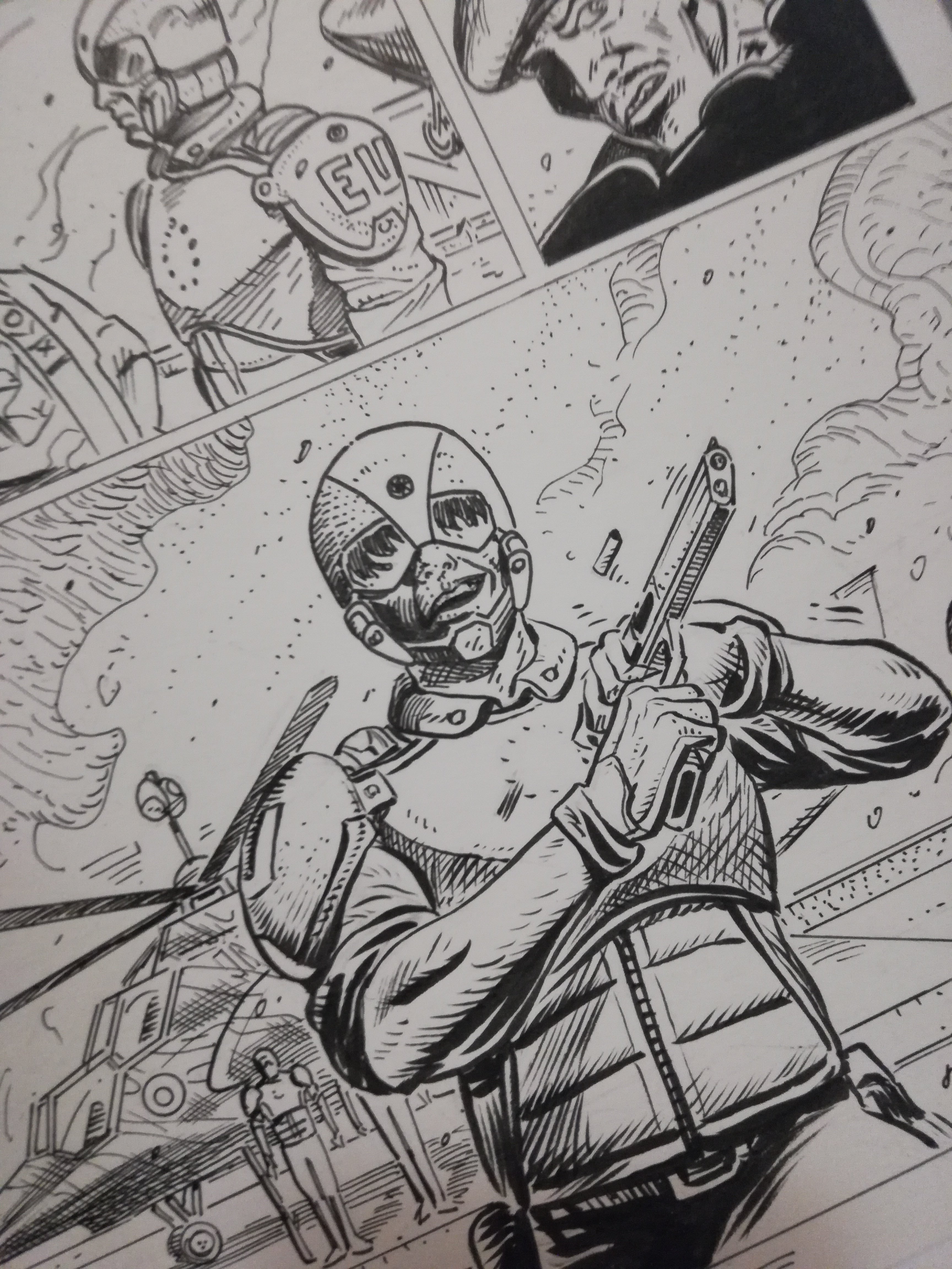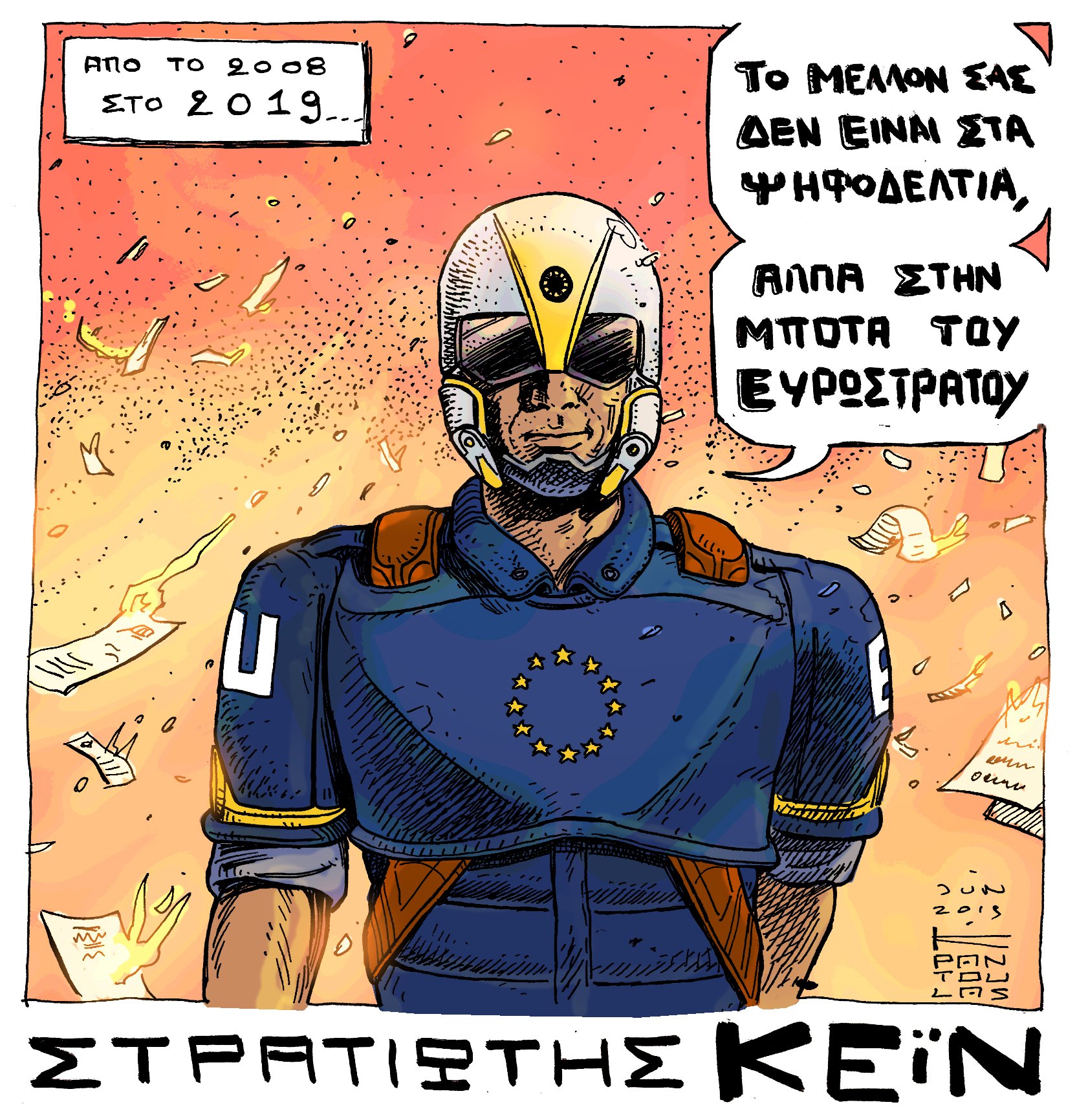 selloscomics Posted September 9, 2019 Member ID: 6,278 Group: Members Topic Count: 5 Content Count: 64 Reputation: 442 Achievement Points: 64 Days Won: 0 With Us For: 6,346 Days Status: Offline Last Seen: November 26 Age: 41 Posted September 9, 2019 Τη νέα Ευρώπη του Στρατιώτη Κέιν, δεν την λες και πολύ δημοκρατίκη! Από το 2008 με το πρώτο τεύχος της σειράς, προσπάθησα να μιλήσω για την απολυταρχία και τους κινδύνους που μπορεί να συναντήσουμε στο μέλλον. Είναι 2019 και έχω μια τελευταία ιστορία να πω, ο Κειν είναι ένας βρώμικος ευρωστρατιώτης που δεν υπολογίζει κανέναν και βλέπει τους πολίτες σαν αριθμούς, δουλεύει για ένα διεφθαρμένο σύστημα, για μια άρρωστη πολιτική elite. Αυτή την φορά όμως κάτι θα αλλάξει δραματικά, το σύστημα που τον τάιζε θα στραφεί εναντίον του. Πληρώνοντας το τίμημα θα ζήσει με το δικό του πρόσωπο κάτω από μια μπότα. Σε αυτό το κόμικ η Ευρώπη μετατρέπεται στον χειρότερο εφιάλτη επί της γης και όσα δείτε μέσα εκεί, εύχομαι να μείνουν για πάντα στη σφαίρα της φαντασίας. VID_41500714_220938_026.mp4 5 4 Quote