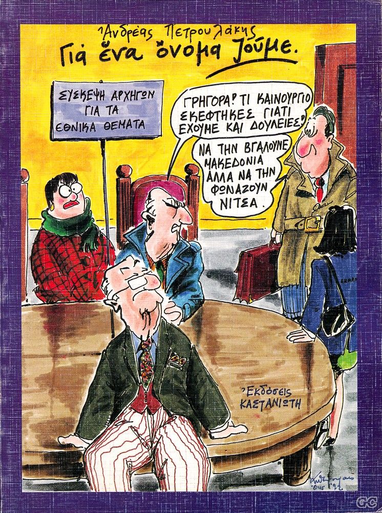 Melandros Posted November 2, 2008 Member ID: 4,830 Group: Veterans Topic Count: 480 Content Count: 2,665 Reputation: 16,220 Achievement Points: 2,667 Days Won: 3 With Us For: 6,483 Days Status: Offline Last Seen: October 30 Age: 47 Posted November 2, 2008 Από τις Εκδόσεις Καστανιώτη κυκλοφορεί το 1992 το πέμπτο βιβλίο (και μάλλον το τελευταίο μέχρι τώρα..) του Ανδρέα Πετρουλάκη. Μέσα στο άλμπουμ αυτό υπάρχουν πολιτικές γελοιογραφίες με το γνώριμο σχέδιο και το καυστικό του χιούμορ, της περιόδου 1991-92. Ο Ιατρός-Γελοιογράφος Α. Πετρουλάκης, με μεγάλη διαδρομή στην γελοιογραφία έχει συνεργαστεί με πολλές εφημερίδες και περιοδικά (Βήμα, Αυγή, Έθνος, Μεσημβρινή, Καθημερινή, και σε περιοδικά όπως Αντί, Γαλέρα, Κλίκ και Μετρό), ενώ έχει βγάλει όπως είπαμε και 5 άλμπουμ.. Το Ημερολόγιο Του Ανδρέα Χώρα Θαυμάτων Η Ψυχολογία Και Άλλες Παθήσεις Τι Είν Η Πατρίδα Μας και τελευταίο το : Για Ένα Όνομα Ζούμε Αφιέρωμα στον Αντρέα Πετρουλάκη 9 Quote