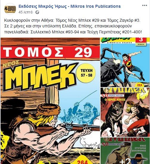 Retroplaymo Posted February 7, 2019 Member ID: 31,159 Group: Veterans Topic Count: 282 Content Count: 5,004 Reputation: 33,053 Achievement Points: 5,005 Days Won: 99 With Us For: 3,769 Days Status: Offline Last Seen: November 7, 2020 Age: 48 Posted February 7, 2019 Από το facebook της εκδοτικής, για όσους ενδιαφέρονται. Παράθεση Κυκλοφορούν στην Αθήνα: Τόμος Νέος Μπλεκ #29 και Τόμος Ζαγκόρ #3. Σε 2 μήνες και στην υπόλοιπη Ελλάδα. Επίσης, επανακυκλοφορούν πανελλαδικά: Συλλεκτικό Μπλεκ #93-94 και Τεύχη Περιπέτειας #201-400! 7 2