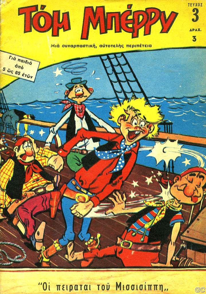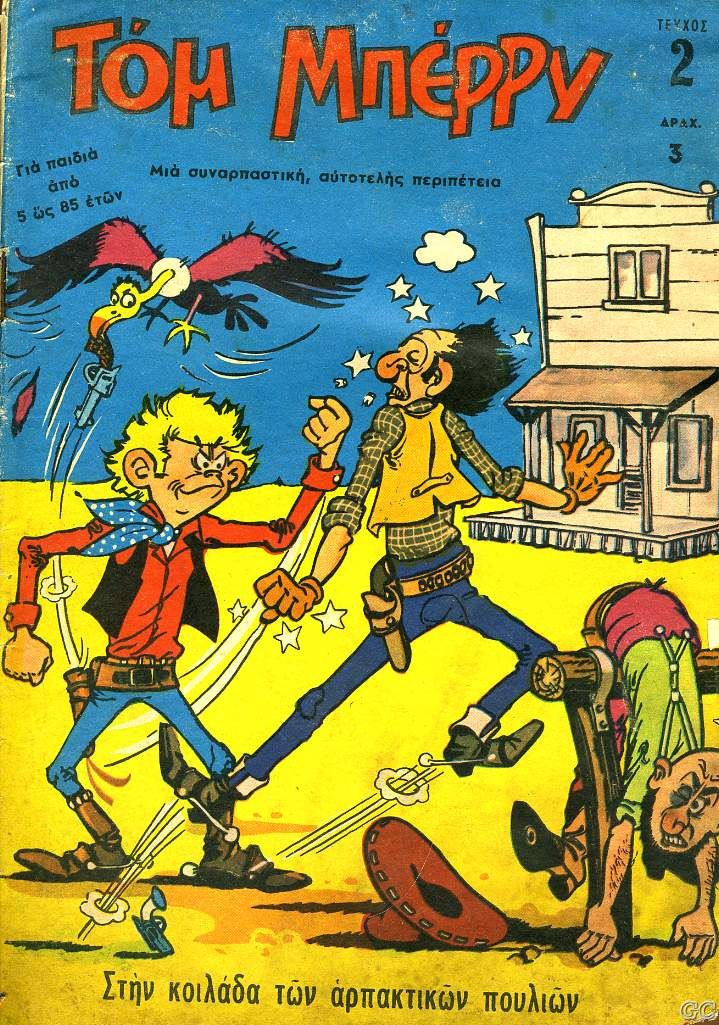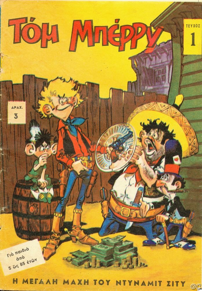 Valtasar Posted October 23, 2007 Member ID: 1 Group: Root Admin Topic Count: 1,738 Content Count: 9,305 Reputation: 67,051 Achievement Points: 8,896 Days Won: 162 With Us For: 7,033 Days Status: Offline Last Seen: 1 hour ago Age: 62 Posted October 23, 2007 Νοέμβριο του 1969, ο εκδότης Κ. Παπαχρυσάνθου κυκλοφορεί μια μηνιαία σειρά ονόματι ΤΟΜ ΜΠΕΡΡΥ Μεσαίο μέγεθος(17,5Χ24,5), έγχρωμο, 28 σελίδες, αφορούσε περιπέτειες του Τομ Μπέρρυ μιας απομίμησης του Λούκυ Λουκ. Ο Κ.Κάσσης αναφέρει ότι είναι από τα τελευταία που τυπώθηκαν με το παλιό σύστημα της λιθογραφίας, πριν αρχίσουν να βγαίνουν τα πάντα σε Offset (που επιβλήθηκε μετά το 1960 στην Ελλάδα) Λέγεται ότι έφτασε τα 38 τεύχη πριν σταματήσει η έκδοσή του. Παραθέτω μερικά εξώφυλλα και μία εσωτερική σελίδα για να δείτε το σχέδιο.Ευχαριστούμε για τα εξώφυλλα τους crc, Dream Factory, tik , KILLMATH & Han Solo. 17 Quote
