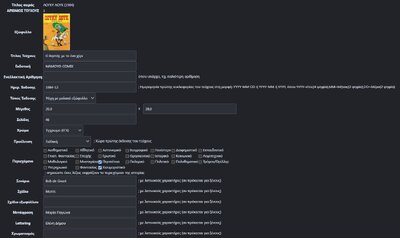 tik Posted July 23, 2024 Member ID: 25,133 Group: Veterans Topic Count: 281 Content Count: 6,542 Reputation: 64,755 Achievement Points: 6,610 Days Won: 47 With Us For: 5,034 Days Status: Offline Last Seen: 3 hours ago Age: 49 Posted July 23, 2024 Άποψη μου: Μιας και ο Θοδωρής πήρε την πρωτοβουλία, να ξαναορισει σε συνεργασία με έναν μοντ το τι ακριβώς θα γινει και να τα γράψει ωραία στο πρώτο ποστ, ώστε να βλέπουμε τις ελλείψεις και να μπορεί να ενημερώνει τη λίστα. Ας πούμε: 1. Θα τα καταγράφει σε λίστα ή σε πίνακα. 2. Τι πληροφορίες θέλουμε. Πχ ημερομηνία έκδοσης, χρώμα ράχης, τιμή, σελίδες. Γιατί αυτές, εκτός του ότι θα βοηθήσουν στο ξεκαθάρισμα, μετά μπορεί να περαστούν στα στοιχεία του εξωφύλλου στη βάση. 3. Ποιες είναι τελικά οι σειρές και με ποια χαρακτηριστικα στα εξώφυλλα. 4. Θα περνάμε σκαναρισματα; Οι υπόλοιπες πληροφορίες πού θα αναγράφονται; Σκαναρισματα και φωτογραφίες; 8 1 Quote