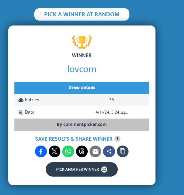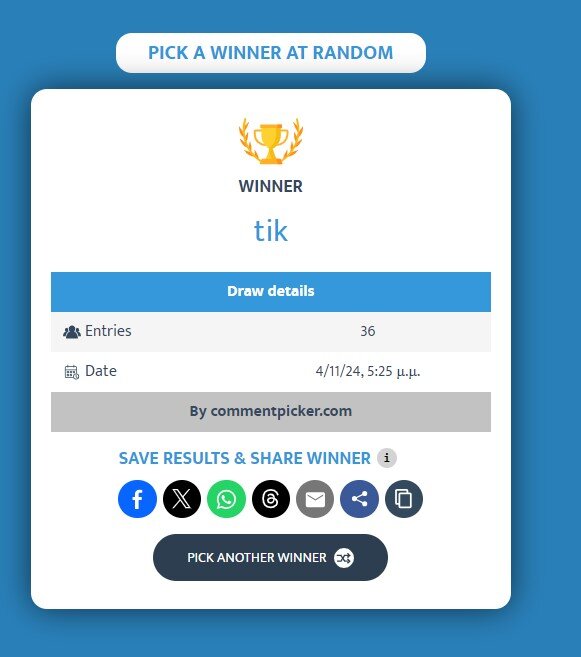 tik Posted November 4, 2024 Member ID: 25,133 Group: Veterans Topic Count: 282 Content Count: 6,545 Reputation: 64,787 Achievement Points: 6,613 Days Won: 47 With Us For: 5,038 Days Status: Offline Last Seen: 25 min ago Age: 49 Posted November 4, 2024 Ευχαριστώ πολύ, πάντα τέτοια, συνεχίστε τις ωραίες δράσεις. 11 2