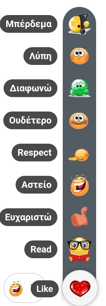 Ζάνταφ Posted June 5, 2025 Member ID: 41,338 Group: Members Topic Count: 55 Content Count: 1,150 Reputation: 7,919 Achievement Points: 1,220 Days Won: 22 With Us For: 782 Days Status: Offline Last Seen: 10 hours ago Posted June 5, 2025 Με τον κίνδυνο να ανοίξω το ποιο άκυρο Θέμα όλων των Εποχών, και με μεγάλες δόσεις κρύου χιούμορ, θέτω το εξής ερώτημα: Τι ακριβώς σημαίνουν τα Reactions με τα οποία αντιδράμε σε ποστς; Θα τα αναλύσω ένα ένα, έτσι όπως τα έχω καταλάβει, μαζί με κάποιες απορίες. Φυσικά το ποστ γίνεται όπως ανέφερα και παραπάνω, για χιουμοριστικούς/σαρκαστικούς σκοπούς, οπότε μην θιχτεί κανένας επειδή του κακολογώ το αγαπημένο Reaction 1. Μπέρδεμα: Αρκετά ξεκάθαρο νομίζω. Εγώ προσωπικά το χρησιμοποιώ σπάνια, μόνο όταν δεν βγάζω νόημα από κάτι που γράφει κάποιος. 2. Λύπη: Και αυτό πολύ ξεκάθαρο νομίζω, το χρησιμοποιώ όταν διαβάζω για κάτι δυσάρεστο/στενάχωρο, όπως η διακοπή μίας σειράς ή κάποιο δυσάρεστο γεγονός, όπως ο Θάνατος ενός δημιουργού κλπ. 3. Διαφωνώ: Εδώ αρχίζουν τα ωραία! Το συγκεκριμένο reaction έχει πρασινίσει από το κακό του, ενώ η έκφρασή του είναι ακόμα πιο λυπημένη και από την ίδια την λύπη. Νιώθω βέβαια ότι όποιος το χρησιμοποιεί έχει λίγη διάθεση για τσαμπουκά. 4. Ουδέτερο: Ένα reaction για τους αναποφάσιστους! Ούτε μου αρέσει το ποστ, ούτε το σιχαίνομαι. Βέβαια το φερμουάρ στο στόμα μου φέρνει ένα συναίσθημα: Θέλω να πατήσω "Διαφωνώ" αλλά δεν το κάνω για να μην με δείρουν 5. Respect: Ωραίο Emoticon, όταν κάποιος γράφει κάτι υπερβολικά καλό το αξίζει. Το χρησιμοποιώ κυρίως στο τόπικ των συλλογών! 6. Ευχαριστώ: Λογική απάντηση όταν κάποιος σου κάνει κομπλιμέντο, σου εύχεται κάτι, ή ανεβάζει μια χρήσιμη πληροφορία. Για ποιο λόγο όμως πολλοί το χρησιμοποιούν σε παρουσιάσεις και ποστ. Δύο λόγους βρίσκω για αυτό: Ή "Ευχαριστώ που πόσταρες την άποψή σου φίλε μου, αλλά δεν είναι αρκετά καλή για να πατήσω Like" ή "Ευχαριστώ ρε φιλαράκι, και εγώ το ίδιο ήθελα να γράψω και με έβγαλες από τον κόπο". 7. Read: To Read είναι για εμένα το πιο αινιγματικό Reaction! Τι ακριβώς σημαίνει και τι εννοούν τα μέλη που το χρησιμοποιούν συχνά πυκνά; Έχει την σημασία "ΔΙΑΒΑΣΤΕ ΑΥΤΟ ΤΟ ΠΟΣΤ ΠΑΡΑΥΤΑ!" ή "Τράβα διάβασε ρε αστοιχείωτε, δεν ξέρεις τι σου γίνεται" Το συγκεκριμένο αλήθεια θα με ενδιέφερε να μάθω για ποια χρήση το προόριζε ο @ Valtasar ή όποιος άλλος το πέρασε Γράψτε και εσείς πώς τα χρησιμοποιείτε, αν φυσικά επιθυμείτε! 13 1 1 Quote