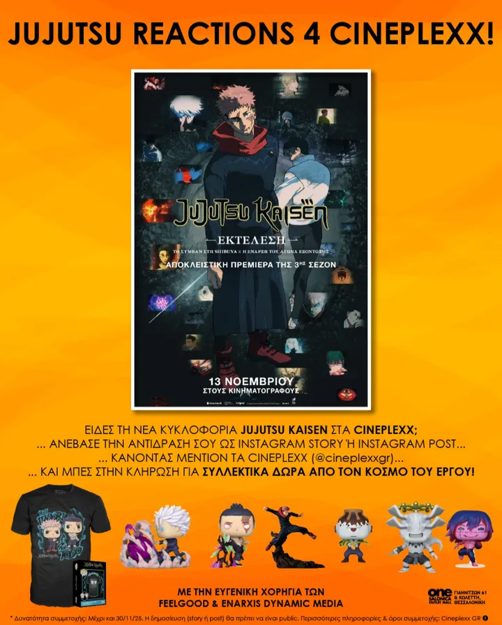 Pavlos_RA Posted November 14 Member ID: 42,778 Group: Members Topic Count: 23 Content Count: 461 Reputation: 2,463 Achievement Points: 485 Days Won: 11 With Us For: 306 Days Status: Offline Last Seen: 8 hours ago Author Posted November 14 (edited) Η πολυαναμενόμενη αναμέτρηση του Γιούτζι με τον Γιούτα έχει λάβει διαστάσεις έναρξης σε 38 αίθουσες πανελλαδικά. Στα θεσσαλονικιώτικα Cineplexx, συλλεκτικά δώρα περιμένουν οκτώ τυχερούς που θα λάβουν μέρος στο διαγωνισμό μέχρι τέλη του μηνός. Ενώ, η αποκλειστική πρεμιέρα αγκαλιάστηκε από τους fans. Από το FB της Sony Pictures Greece: Την Τετάρτη ζήσαμε μία μοναδική βραδιά στα Village Cinemas, στο επίσημο fan screening για τη νέα ταινία Jujutsu Kaisen: Εκτέλεση - Το Συμβάν στη Shibuya x Η Έναρξη του Αγώνα Εξόντωσης. Κλείστε τώρα το εισιτήριο σας για το πιο επικό κινηματογραφικό event! ΤΩΡΑ στους κινηματογράφους. Edited November 14 by Pavlos_RA 2 Quote