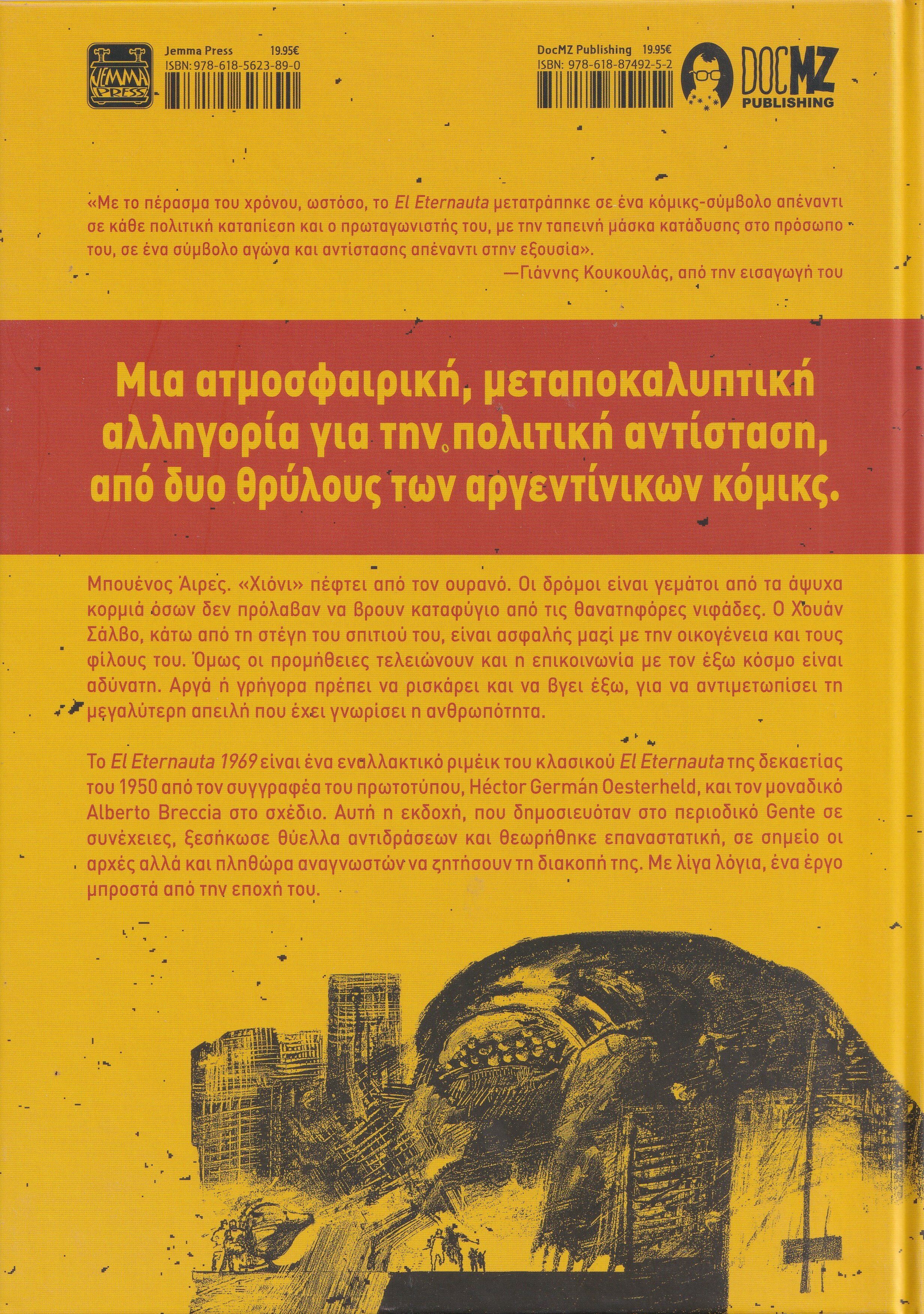 kaneda Posted January 7 Member ID: 35,207 Group: Members Topic Count: 16 Content Count: 521 Reputation: 4,092 Achievement Points: 526 Days Won: 6 With Us For: 2,374 Days Status: Offline Last Seen: 7 hours ago Age: 30 Posted January 7 (edited) Γεια σας παιδιά! Θα ήθελα να ρωτήσω αν κάποιος έχει στα πλάνα του να κάνει την παρουσίαση του El Eternauta 1969 που κυκλοφόρησε πρόσφατα από την Docmz και την Jemma. Μέρες τώρα σκέφτομαι μήπως έκανα εγώ την παρουσίαση, αλλά δεν ξέρω αν είμαι ο κατάλληλος για να μιλήσει για ένα κόμικ τέτοιας βαρύτητας σαν και αυτό. Παρόλα αυτά, αν δεν σχεδιάζει να το παρουσιάσει κάποιος, θα μπορούσε όποιο παιδί μπορεί, και όποτε μπορεί, να μου σκανάριζε τα εξώφυλλα του κόμικ και να τα ποστάριζε εδώ, ώστε να τα συμπεριλάμβανα στην παρουσίαση που θα έκανα εγώ; Σας ευχαριστώ εκ των προτέρων. Edited January 7 by kaneda 17 2